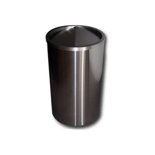 Basurero cilíndrico con tapa y balancín, elaborado en acero inoxidable acabado pulido