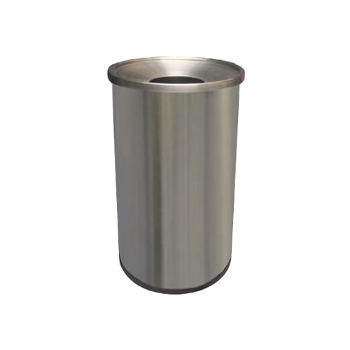 Basurero cilíndrico con tapa cónica, elaborado en acero inoxidable acabado pulido