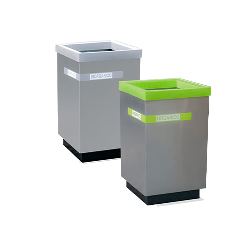 Basurero de cubo con tapa verde o gris, solo aro, elaborado en acero inoxidable acabado pulido, incluye leyenda en vinil