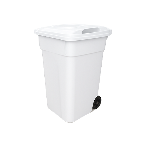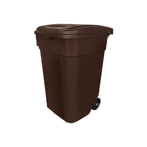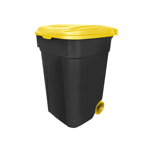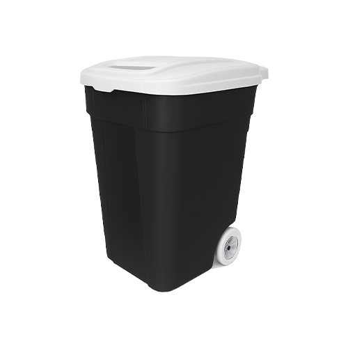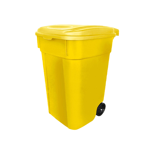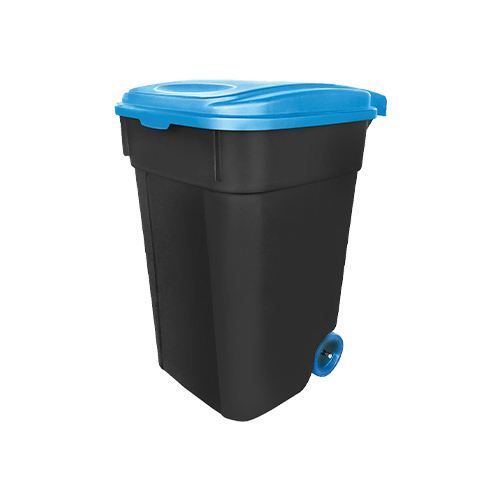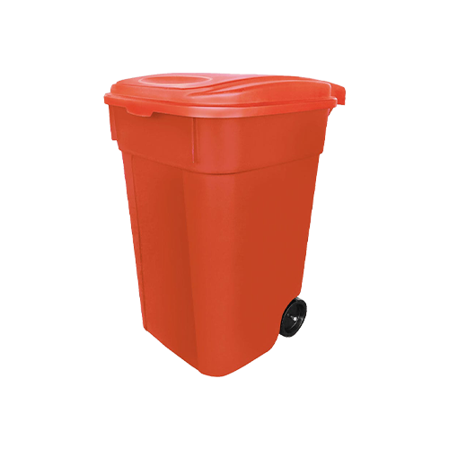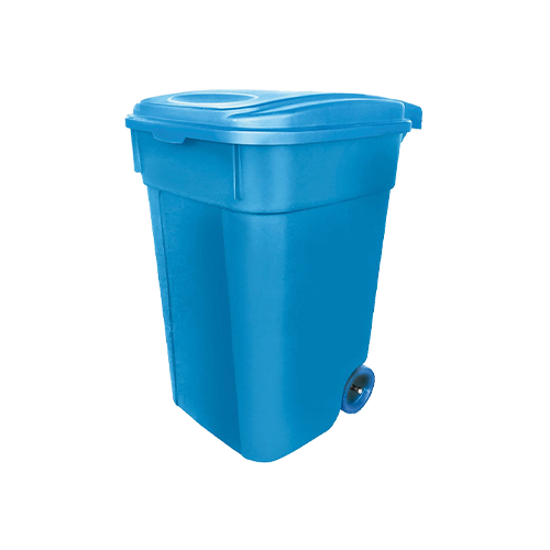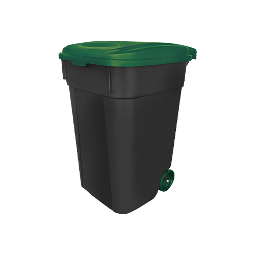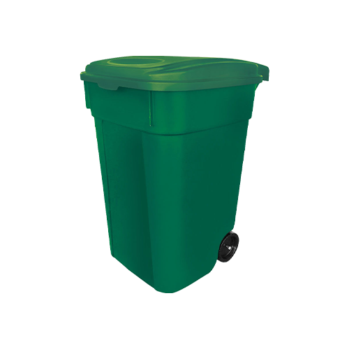 Contenedor con tapa y ruedas elaborado en polietileno de alta densidad, disponible en varios colores.Medidas: 53 x 62 x 81 cms. de altura Capacidad: 145 litros