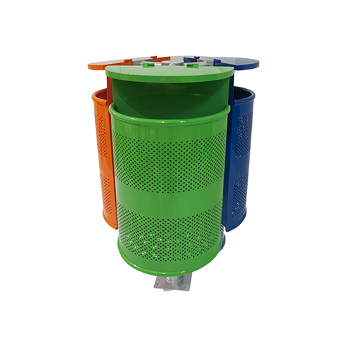 Basurero triple de media luna chico con poste y tapa abatible