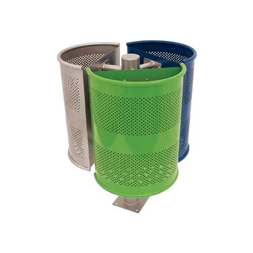 Basurero triple de media luna grande con poste