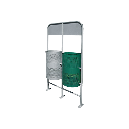 Basurero cilíndrico doble con estructura, abatible o fijo, espacio para señalización
