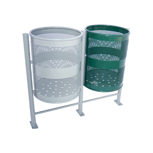 Basurero cilíndrico doble con estructura, abatible o fijo