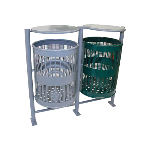 Basurero cilíndrico doble con estructura, tapas fijas con botes abatibles o tapas abatibles con botes fijos
