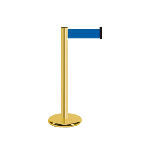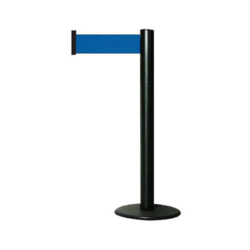 Poste Serie 10 Universal, de 100cms de altura, tubo y cabeza de 3” de diámetro, base de fierro de 35cms de diámetro y 10kgs de peso, cinta de 10cms de ancho por 2.30m de largo en color azul rey o negro, con seguro en el macho y sistema de regresado lento