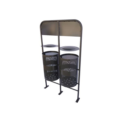 Basurero cilíndrico doble con estructura, abatible o fijo, tapas fijas y espacios para señalización